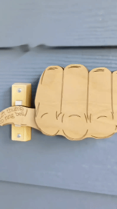 Add personality to your door with this fun wooden hand gesture door knocker. Crafted from durable wood and designed with a playful, rustic look, it brings humor and attitude to your home, garage, or workshop. Whether you’re welcoming friends or making a statement, this piece is sure to spark laughs and conversations.