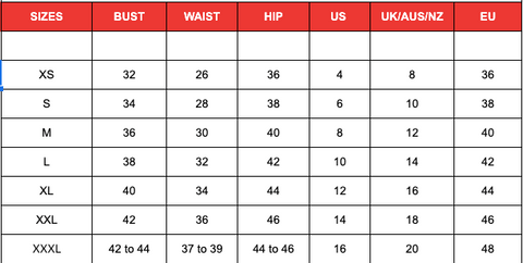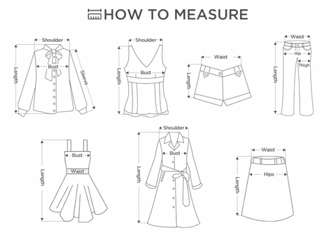This chart helps to measure the tops, jumpsuits and dresses size.