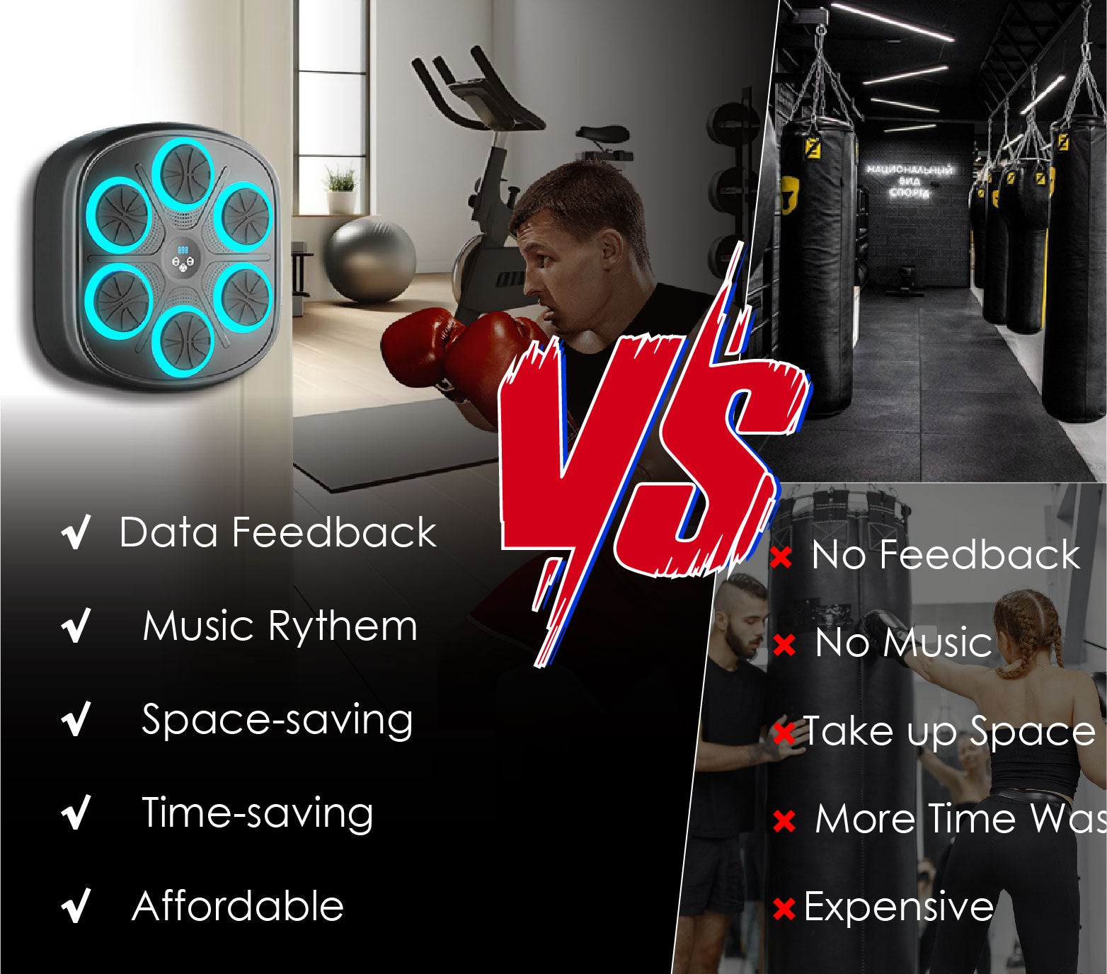 Supports Bluetooth connection to sync with your favorite music for boxing.