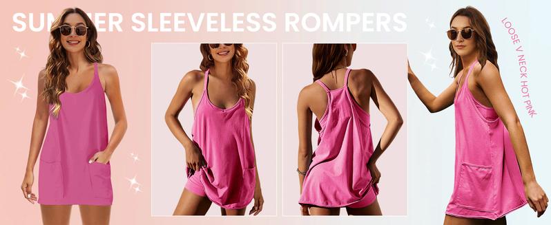 Feature: The women's casual sleeveless sundress has two side patch pockets, scoop neck, racerback, and spaghetti strap, comfy shorts combine lightweight fabrics to not only keep you looking stylish and beautiful but also keep you cool during a hot summer days