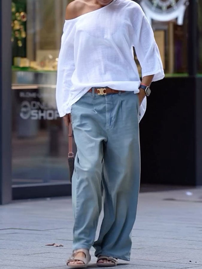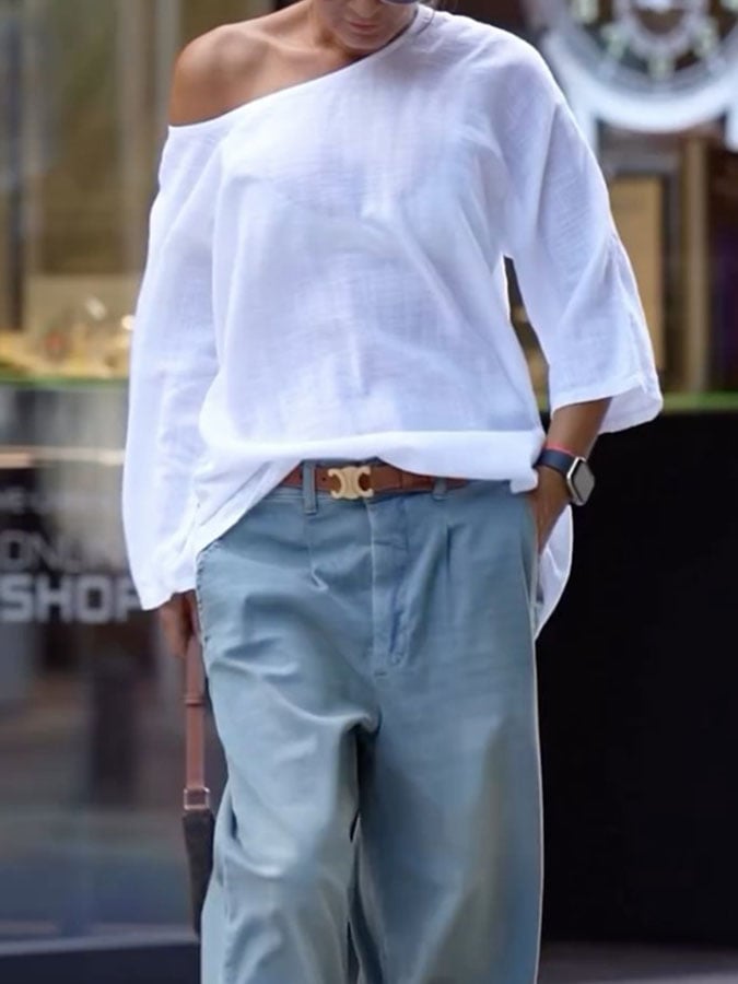 Women'S Casual Solid Color Off-Shoulder Loose Top